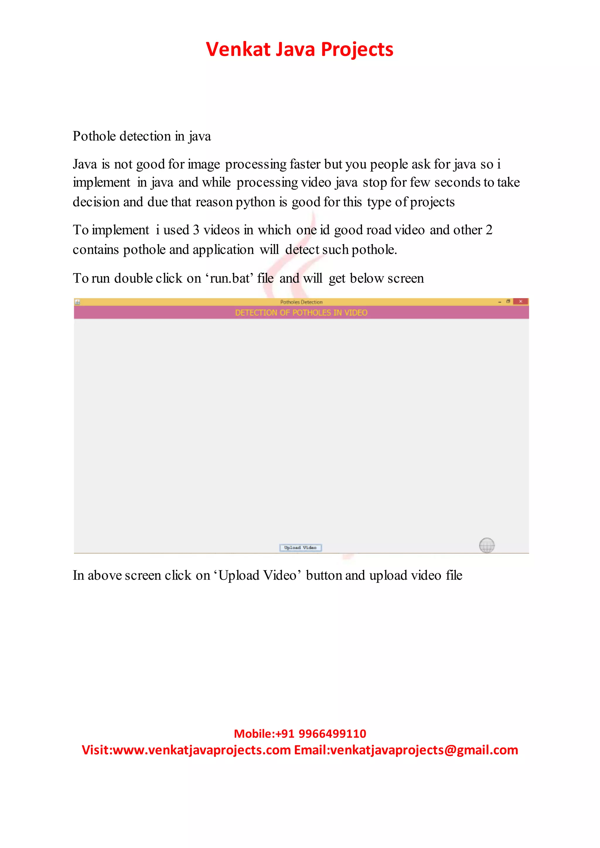 Pothole detection in java | DOCX