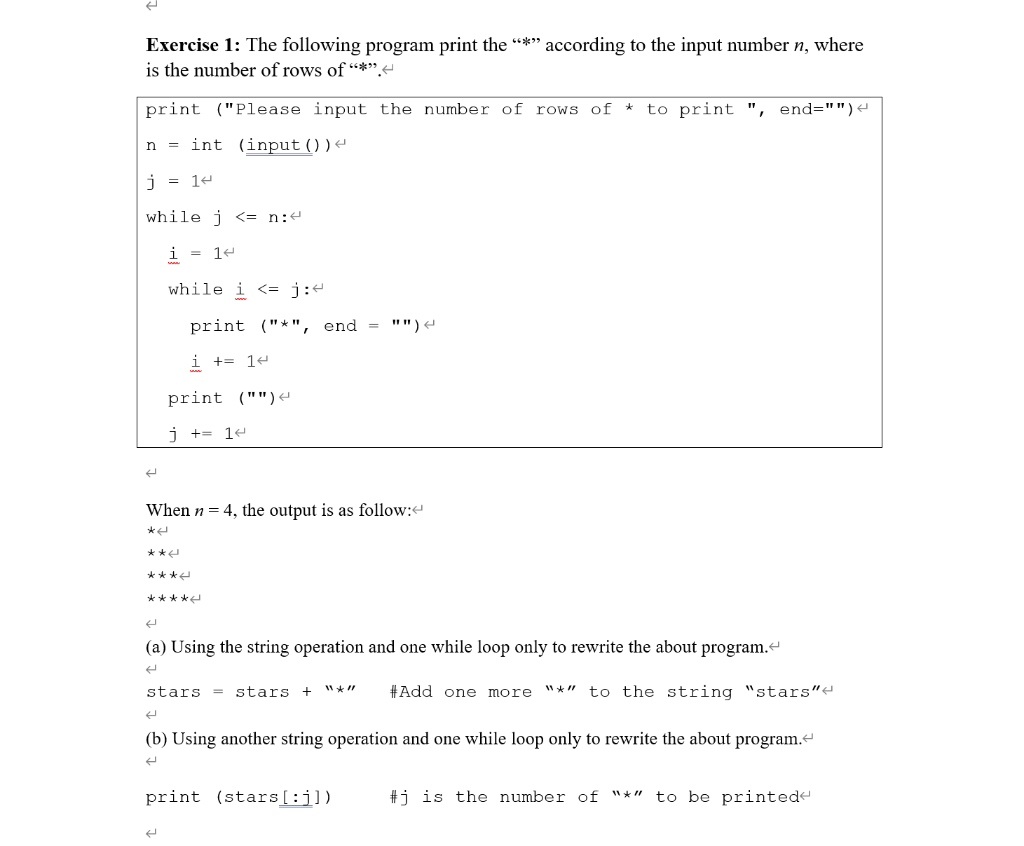 Solved Exercise 1: The following program print the "*", | Chegg.com