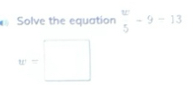 Solved: Solve the equation w/5 -9-13 w= [Math]