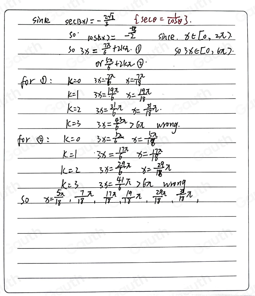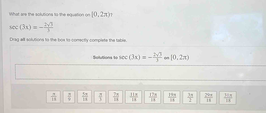 Solved: What are the solutions to the equation on [0,2π ) ? sec (3x ...