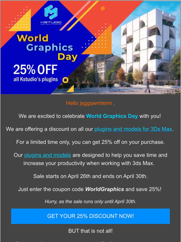 Kstudio: World Graphics Day 25% OFF for 3D plugins | Milled