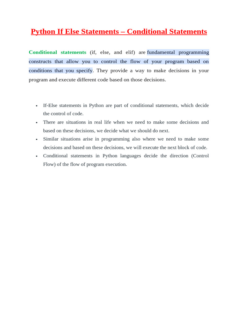 Python Conditional Statements Explained | PDF | Python (Programming ...