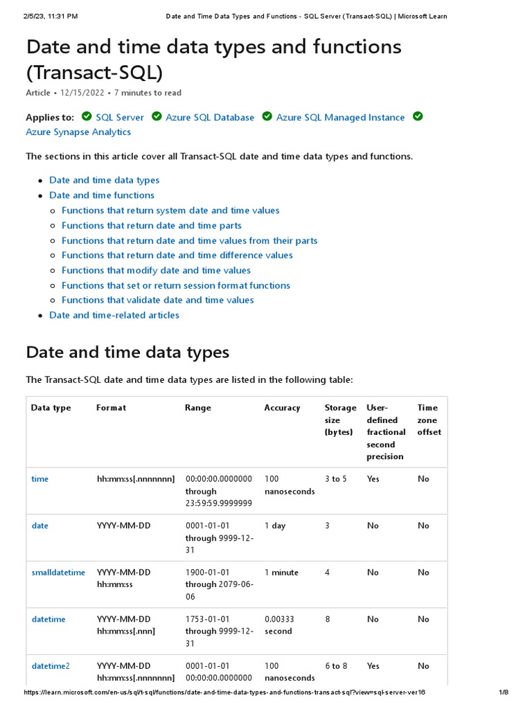 Date and Time Data Types and Functions - SQL Server (Transact-SQL ...