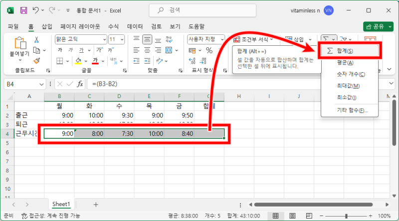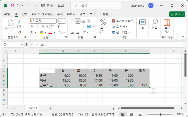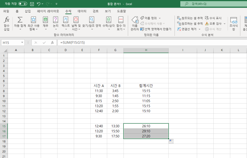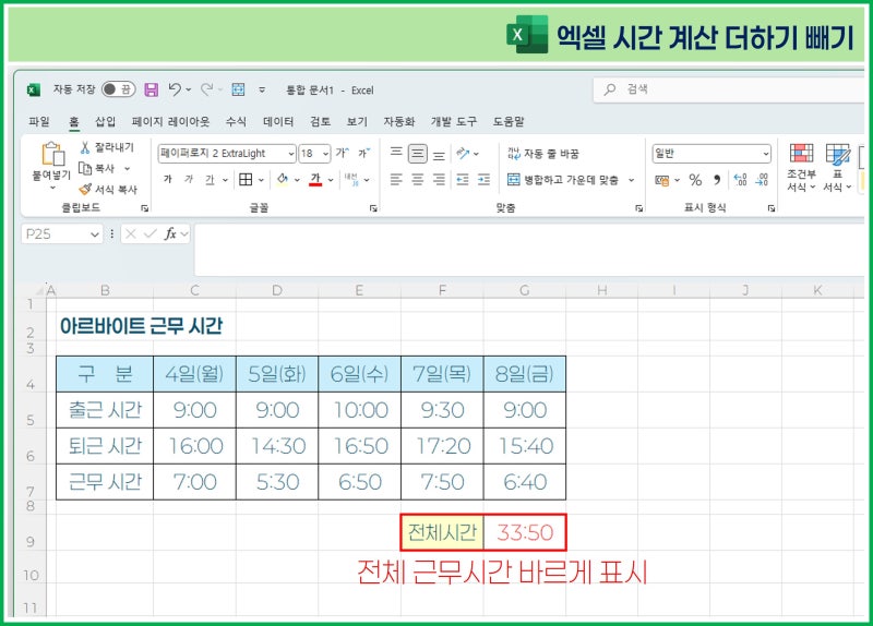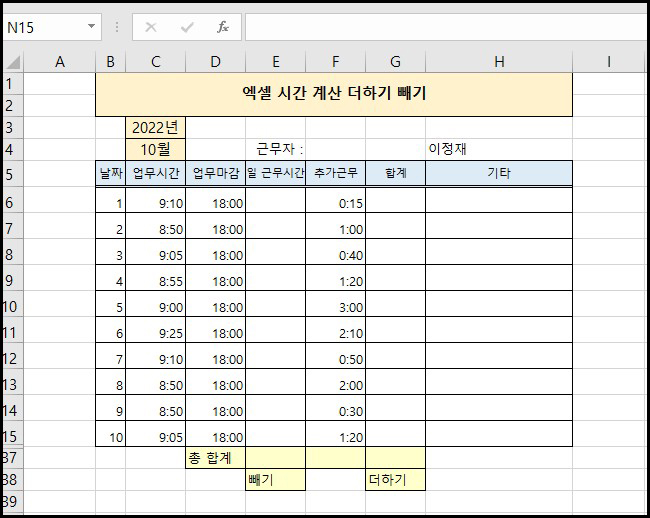 엑셀 시간 계산 더하기 빼기 합계까지 함수 없이 쉽다 : 네이버 블로그
