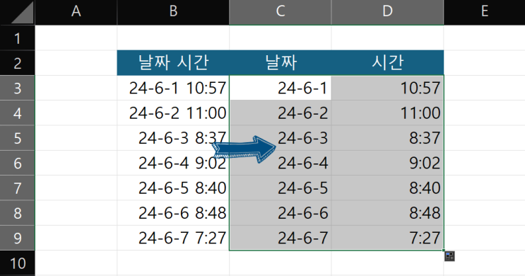 엑셀 날짜 시간 분리하는 방법 날짜 별 계산하기 left함수 text함수 활용 : 네이버 블로그