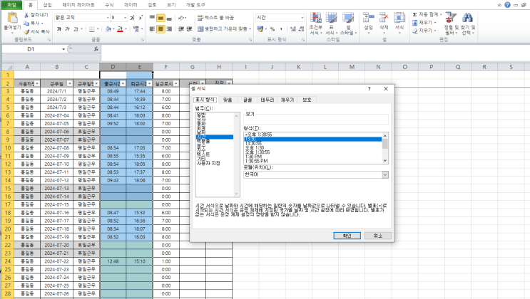 엑셀 데이터 함수 배우기 4_ HOUR,TIME ,시간차이 시간 함수_출퇴근 근무시간 계산 근무시간 초과 계산 을 도와줘요 ...