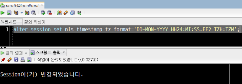 [오라클/SQL] SYSTIMESTAMP : 현재 시스템의 날짜,시각출력 함수 & 출력 형식 설정하기(alter session ...