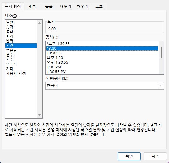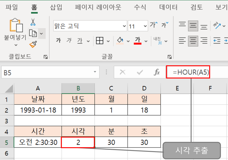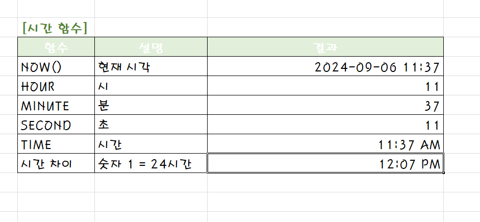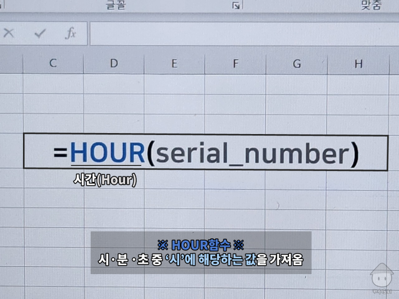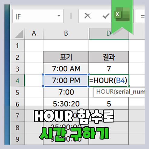 엑셀 HOUR 함수 사용하여 시간 구하기