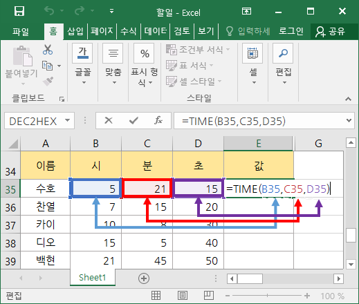 엑셀 시간 계산 : 시간 분 초 TIME 함수 익히기 : 네이버 블로그