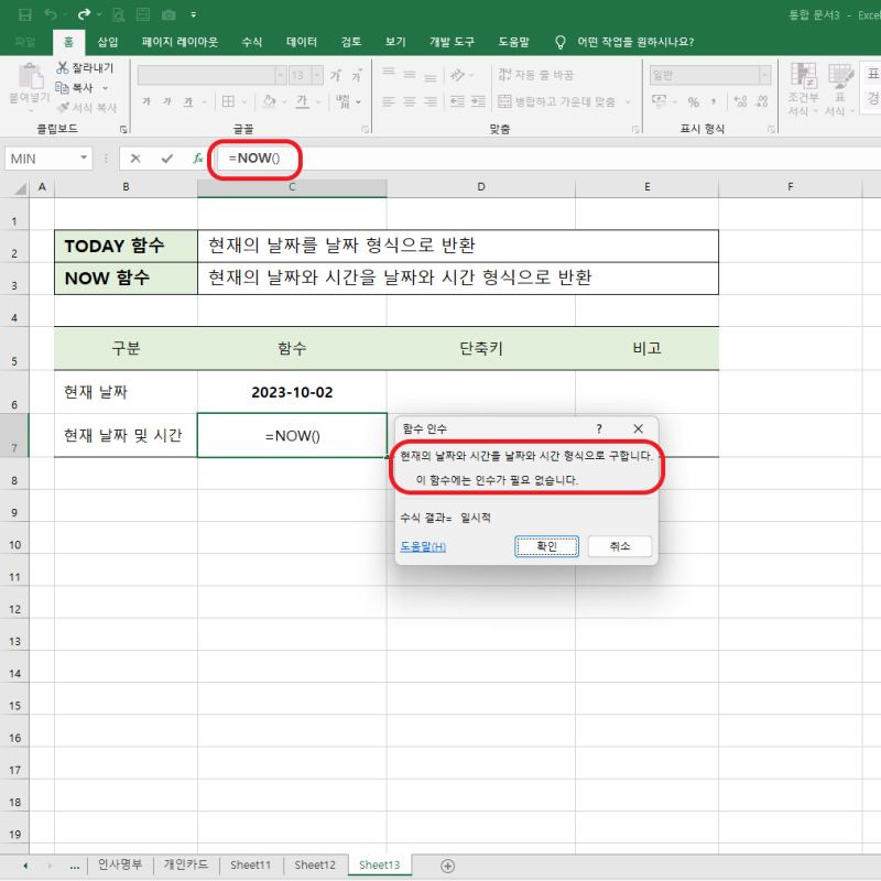 [컴퓨터 꿀팁] 엑셀 오늘 날짜 / 현재 시간 연동 방법 (Today Now 함수 사용) : 네이버 블로그