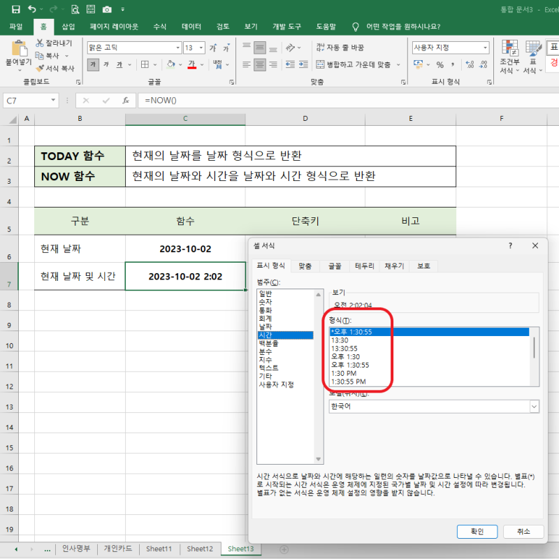 엑셀 NOW 함수 – 현재 시간, 날짜 구하기, 1시간 전후 - 메타트렌드