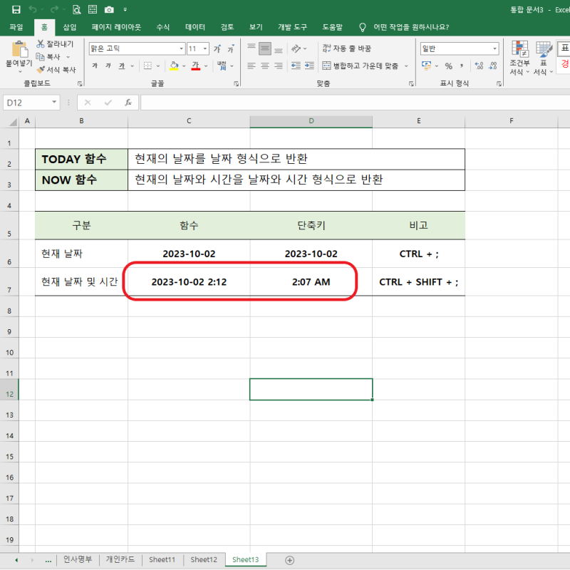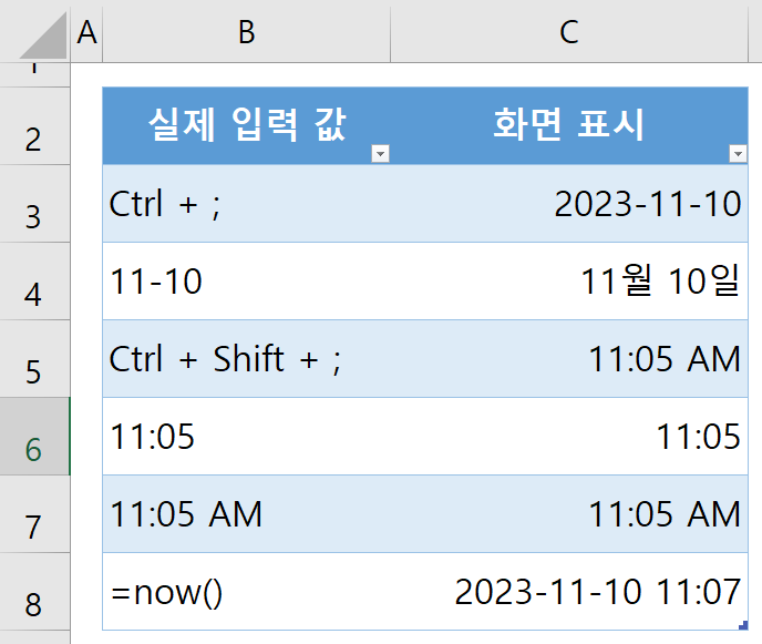 [엑셀 실무] 오늘 날짜, 현재 시각(시간) 단축키 {+ 오늘 날짜 시간 나오는 함수} : 네이버 블로그