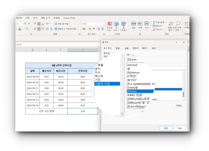 Excel 함수 5. 출퇴근 실 근로시간 구하기 MIN/MROUND/IFERROR/셀 서식 표시 형식 사용 : 네이버 블로그