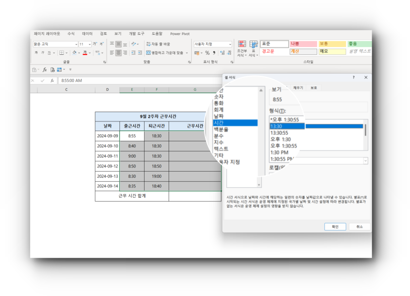 엑셀 근무시간 계산 방법 TIME 함수 사용까지! : 네이버 블로그