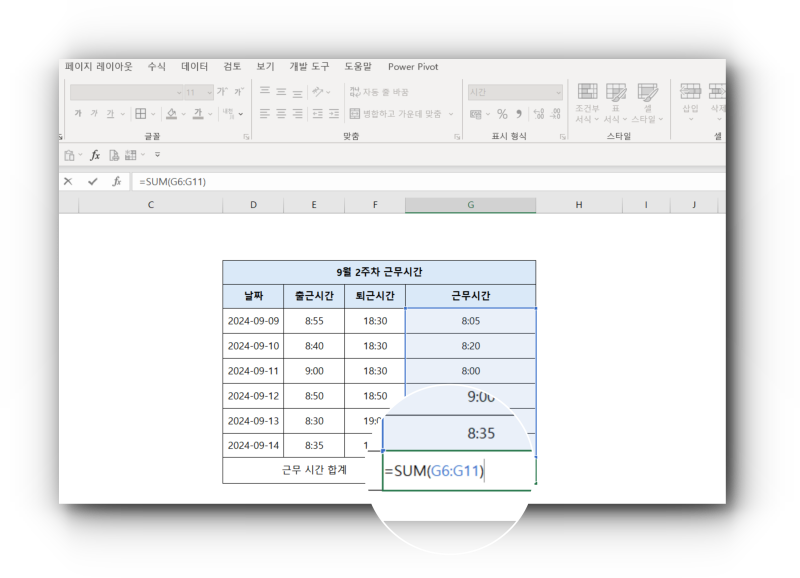 엑셀 시간 계산, 근무시간 더하기 빼기 SUM 함수 : 네이버 블로그