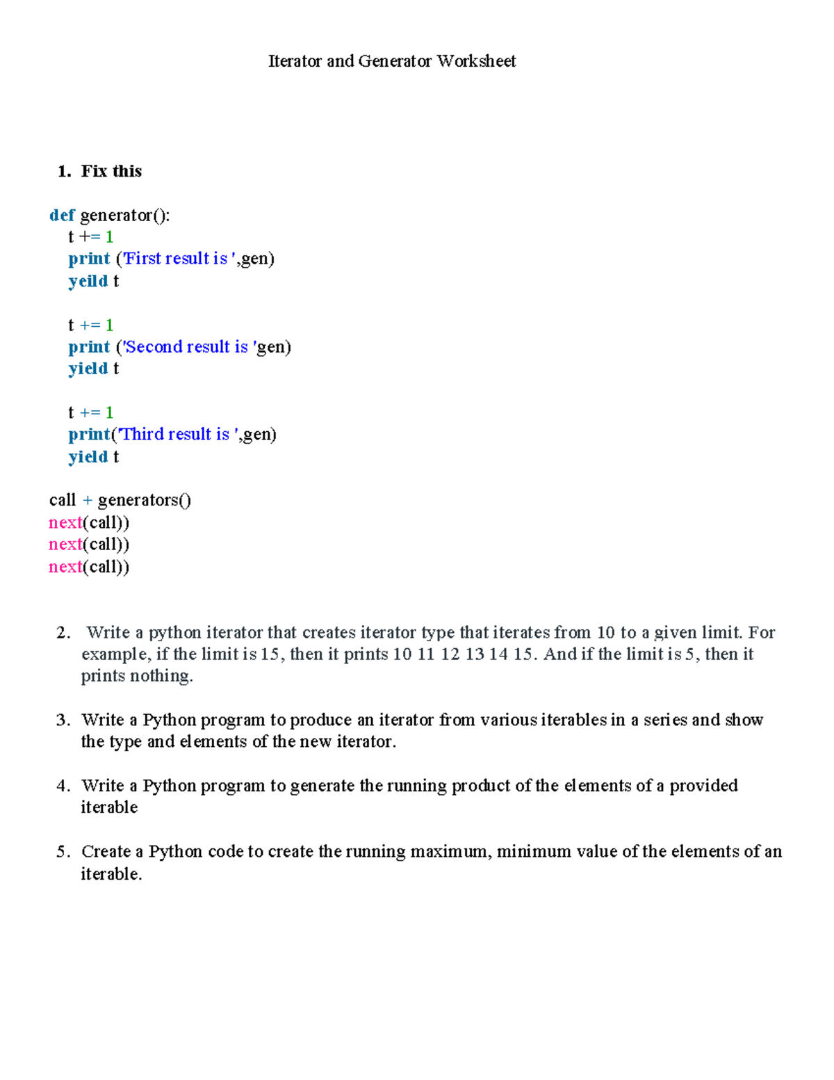 Iterator and Generator Worksheet - Iterator and Generator Worksheet ...