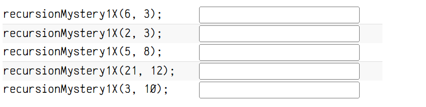 Solved Language/Type: 急 Java recursion For each of the calls | Chegg.com