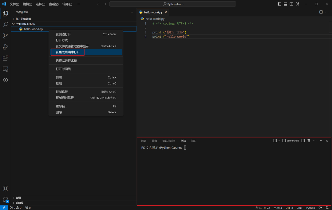 VSCode 终端 Print(“Hello World“)_vscode terminal怎么print-CSDN博客