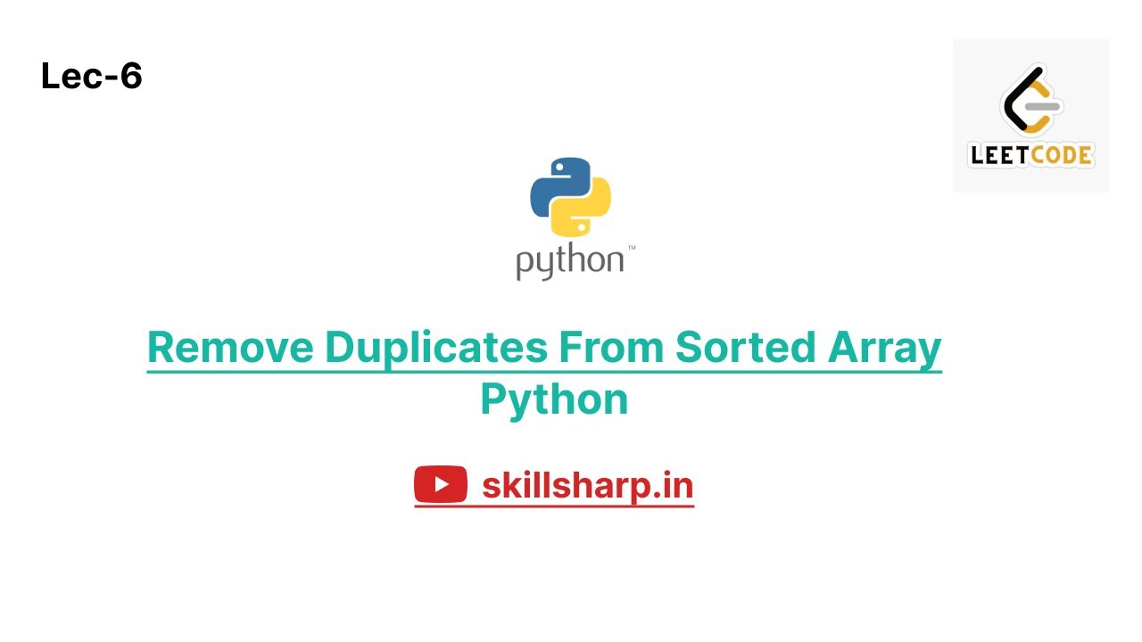 Remove Duplicates from Sorted Array using Python - YouTube