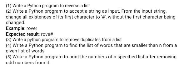 Solved (1) Write a Python program to reverse a list (2) | Chegg.com