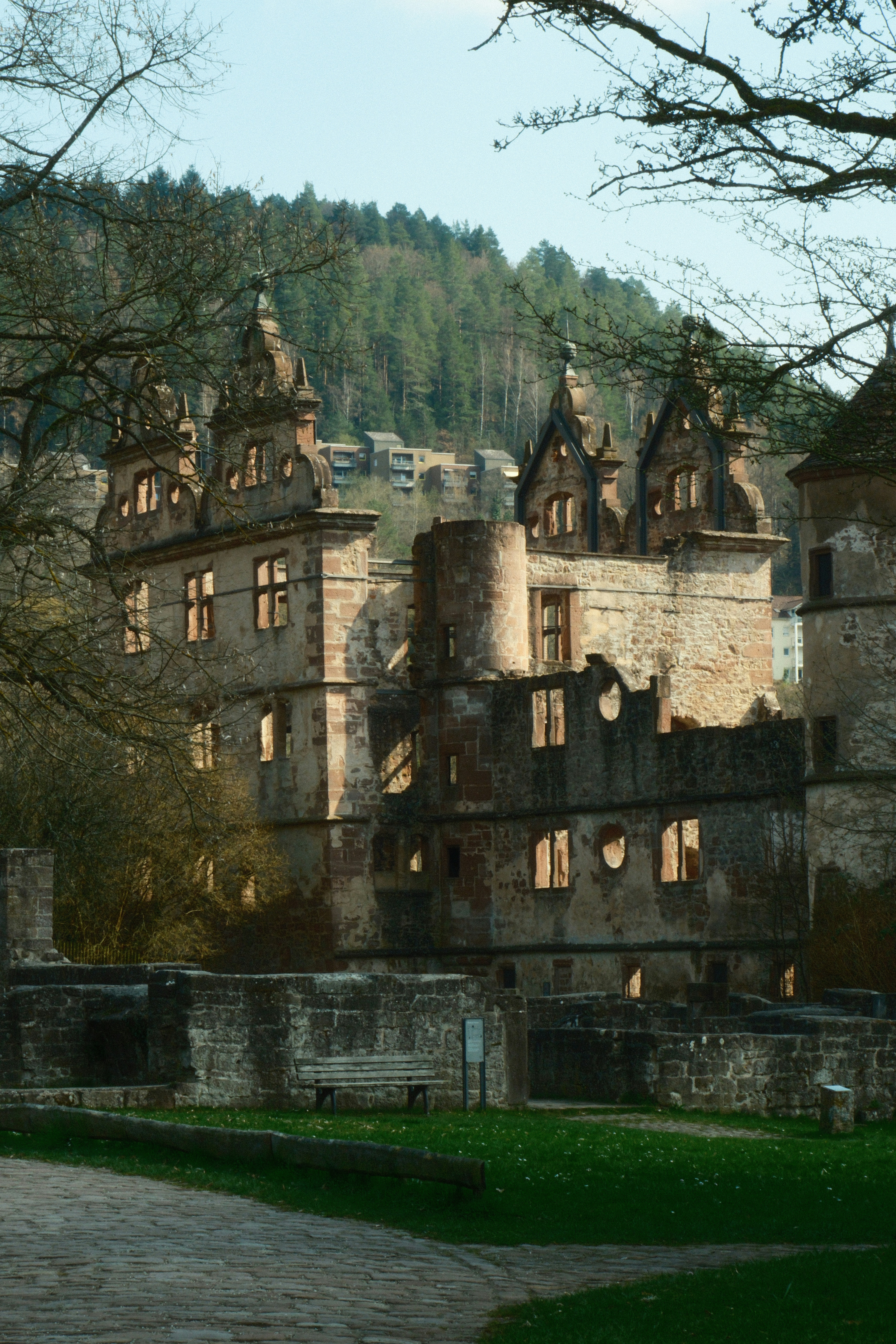Ruins of an old stone castle with forested hills behind photo – Free ...