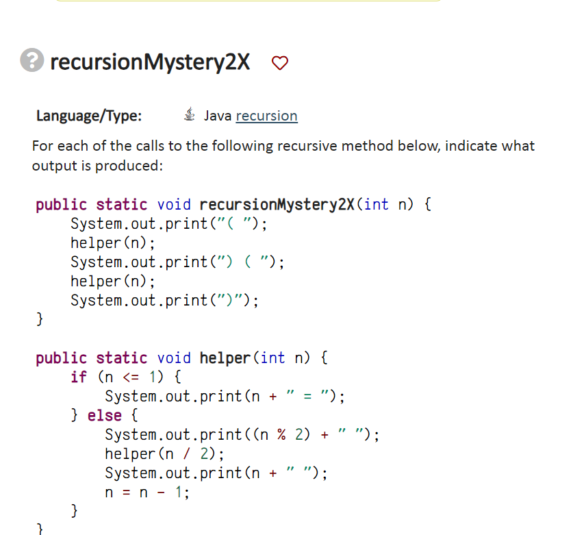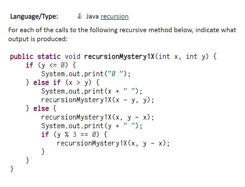 Solved recursive Tracing Language/Type: Java recursion | Chegg.com