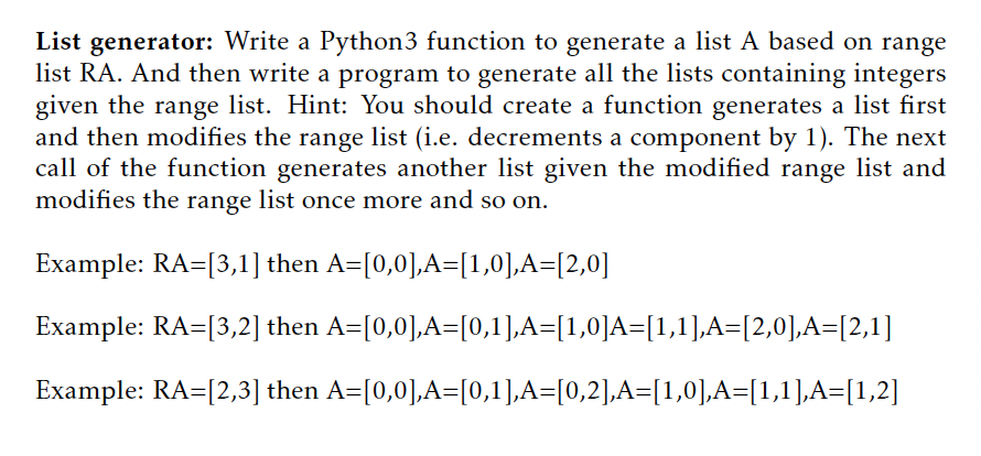 Based on this image's title: “Solved List generator: Write a Python3 function to generate | Chegg.com”