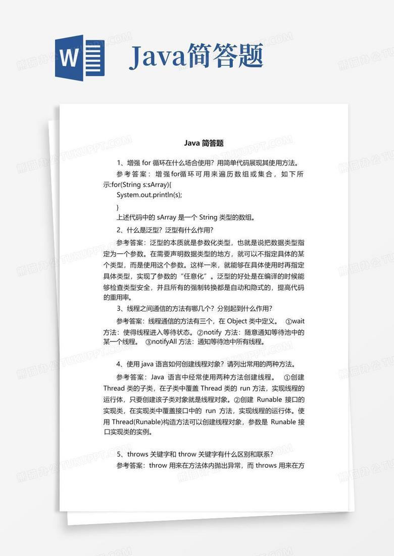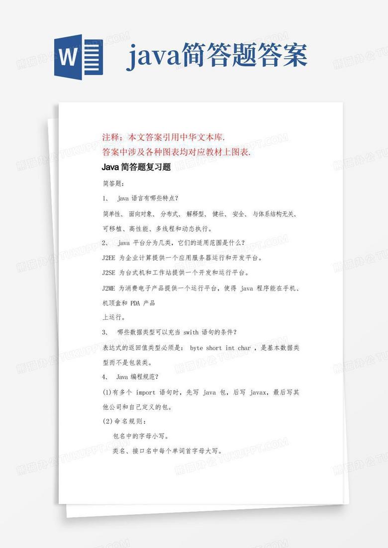 java简答题答案Word模板下载_编号qwkmvpkd_熊猫办公