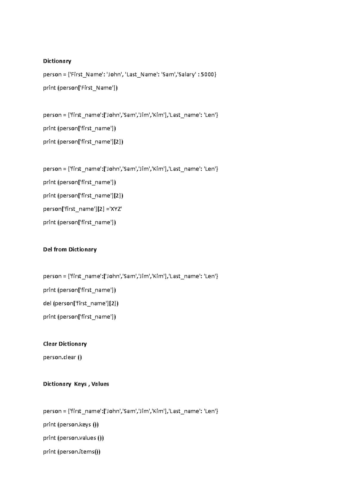 4 Tuple Set Dictionary - Dictionary person = {'First_Name': 'John ...
