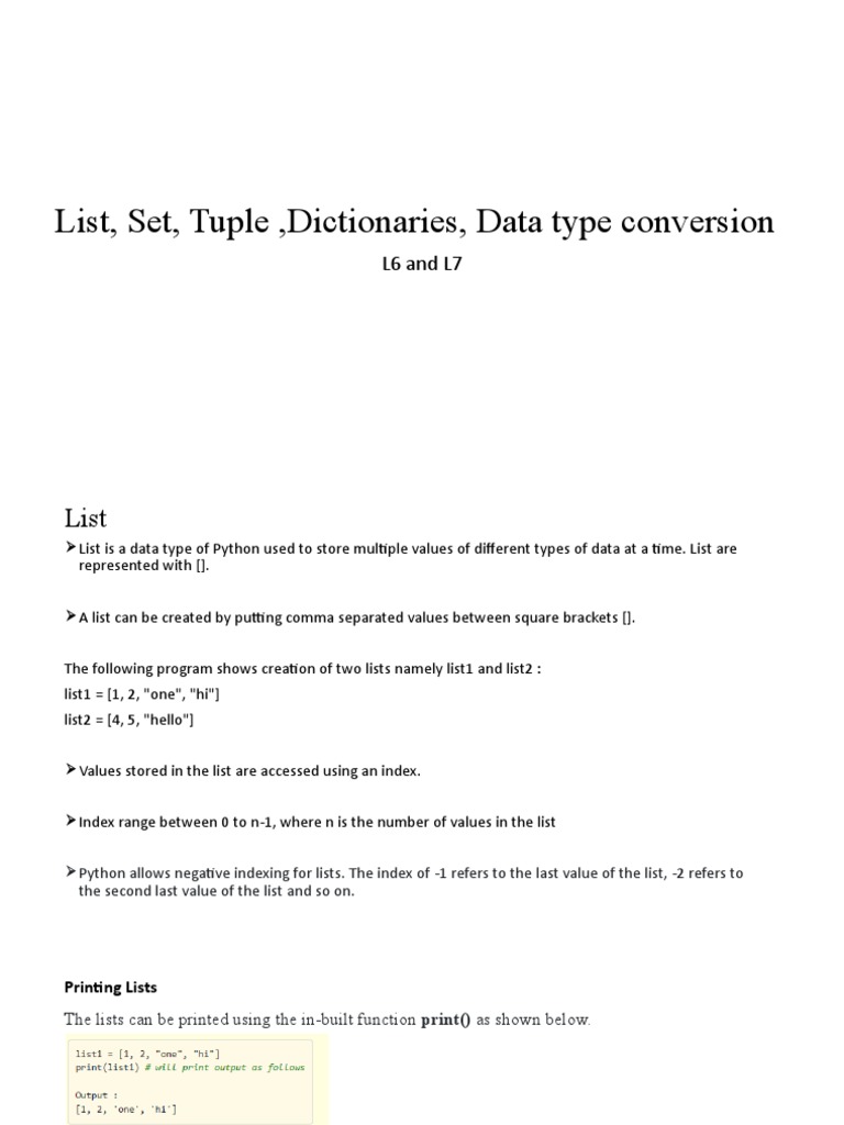 UNIT1 Lesson 6 and 7list - Set - Tuple - Dictionaries - Type Conversion ...