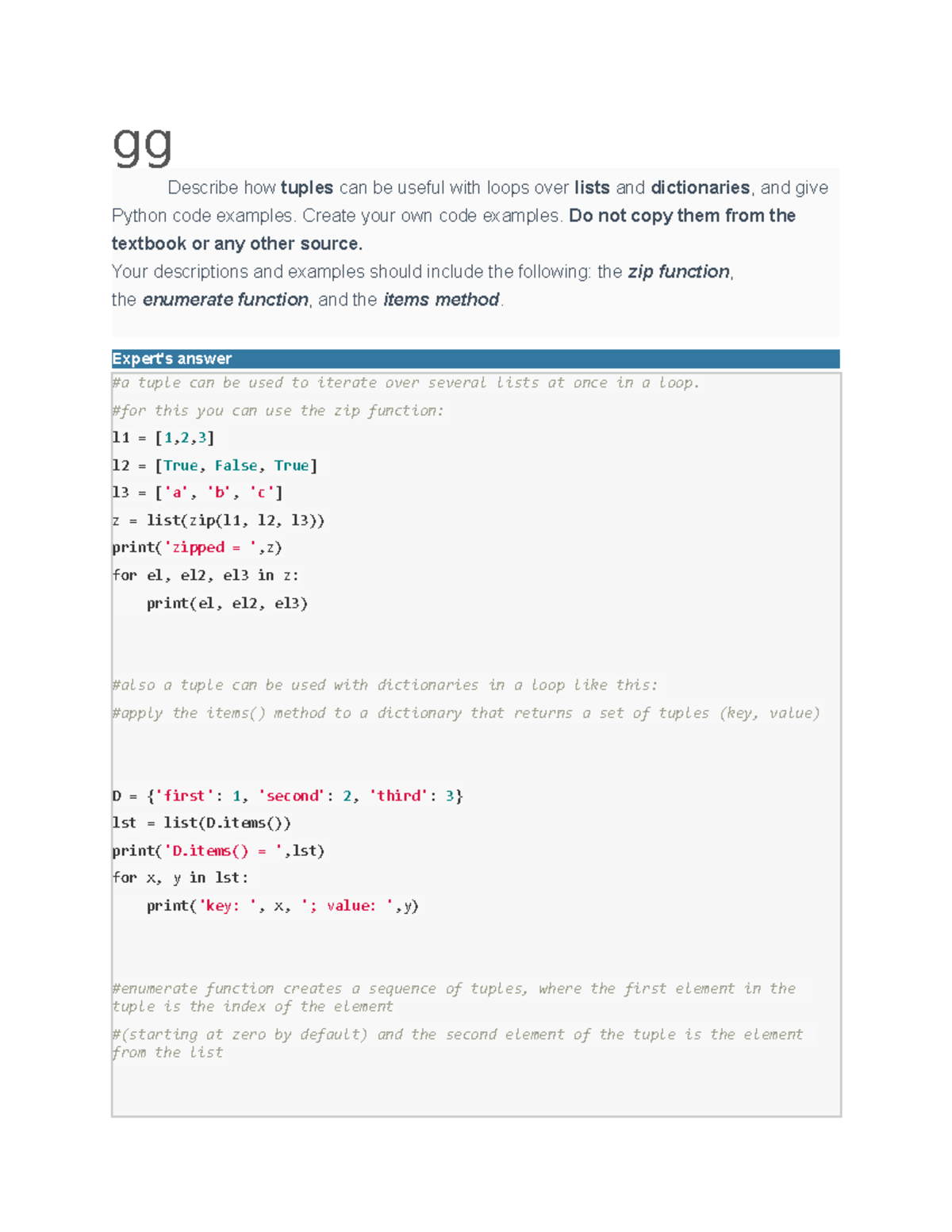 Unit 7 Tuples, lists and dictionaries - gg Describe how tuples can be ...