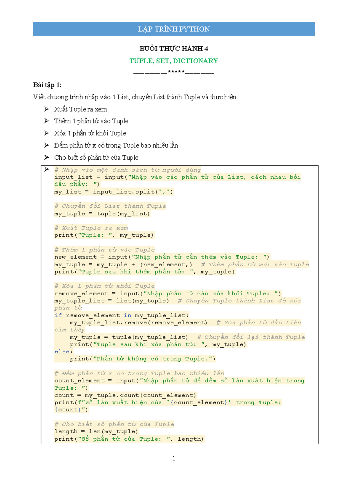 Lab 4: Thα»±c hΓ nh vα»i Tuple, Set vΓ Dictionary - Studocu