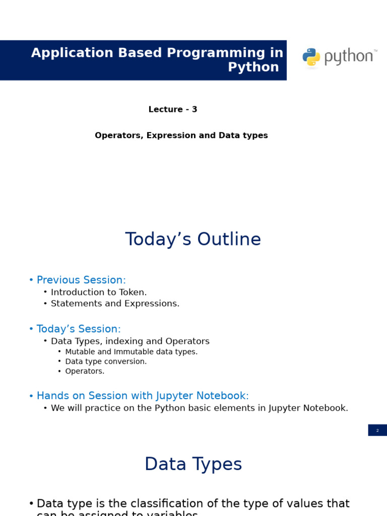 Data Science - Python Data Types, Operatros - 15 - 04 - 2025 | PDF ...