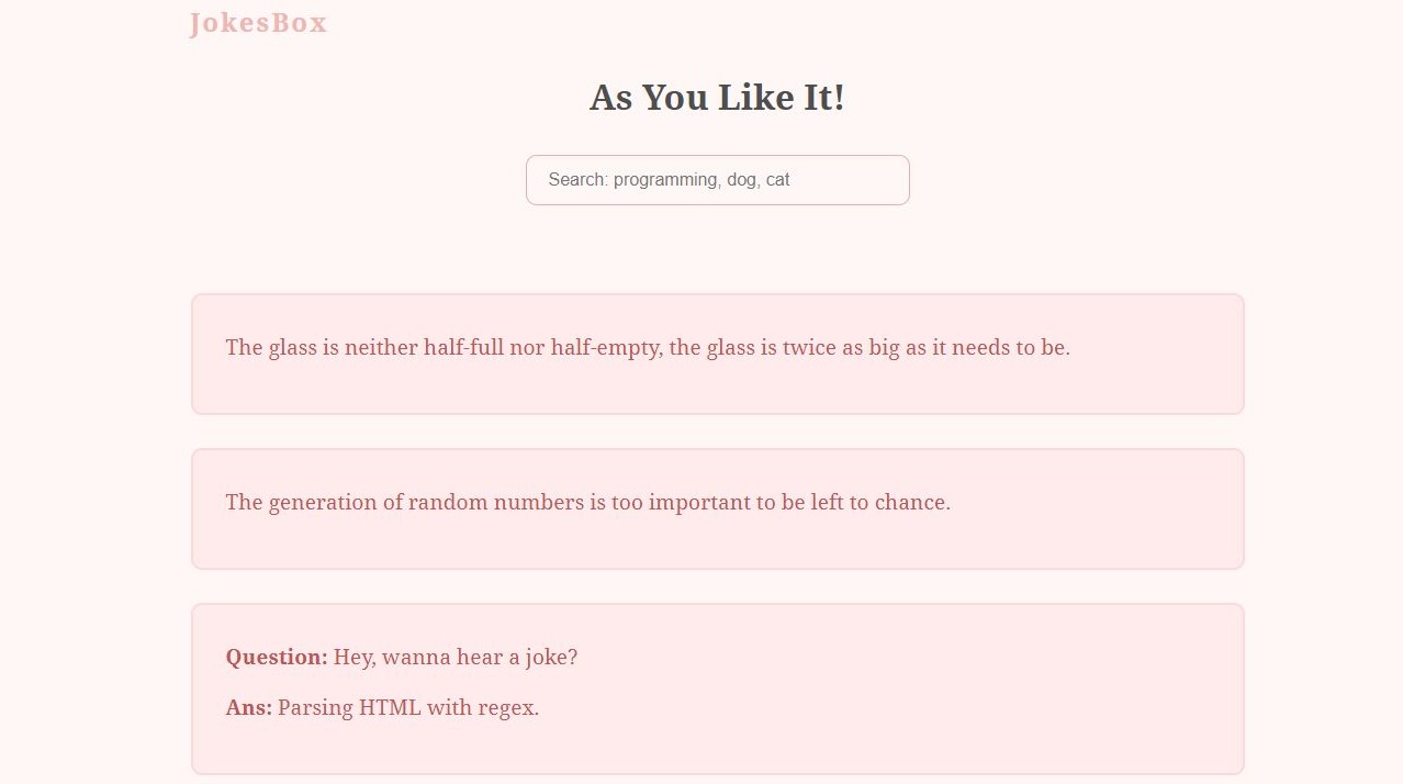 GitHub - meghsohor/jokesbox: Read programming jokes or search for jokes ...