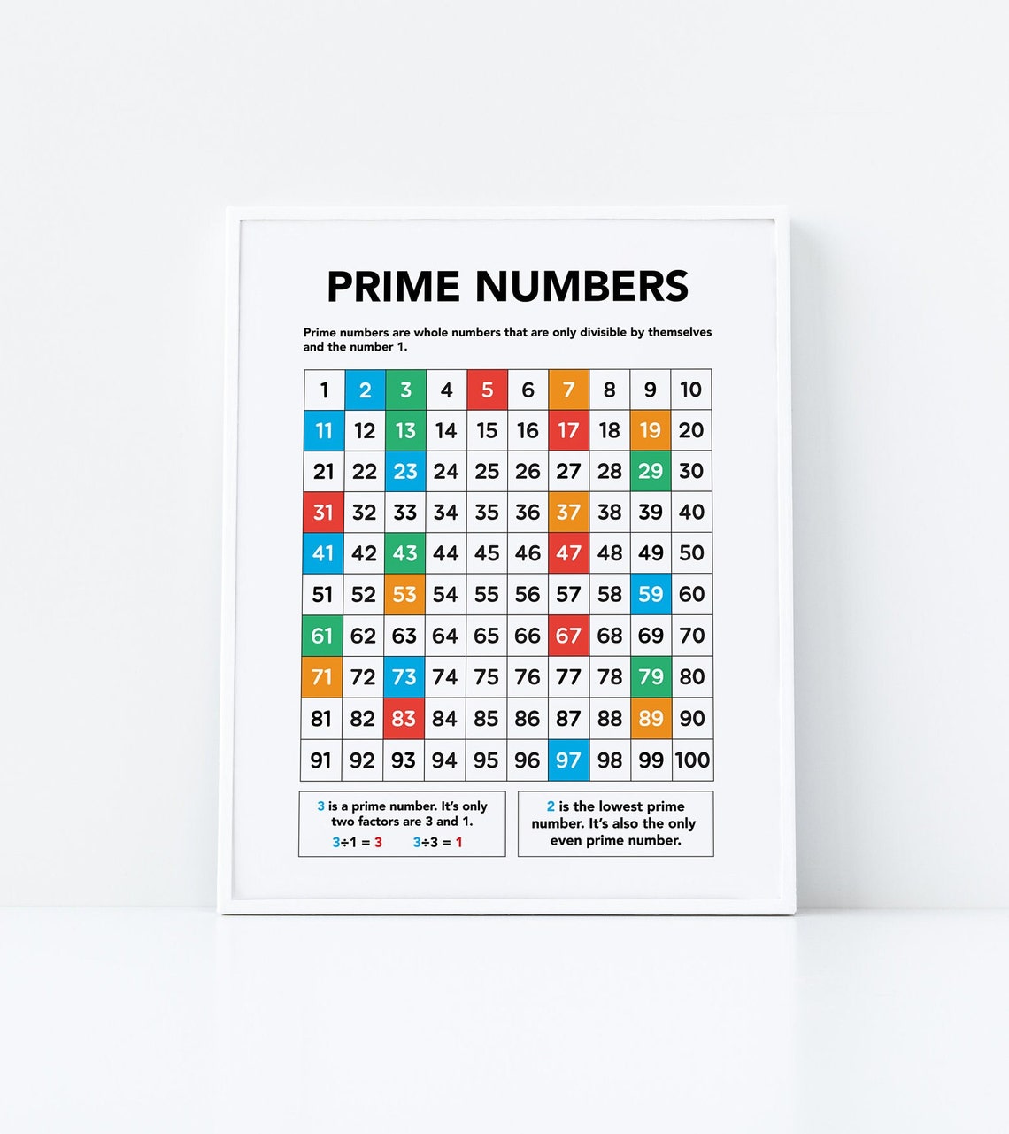 Prime Number Chart 1 to 100 Printable Educational Math Poster ...