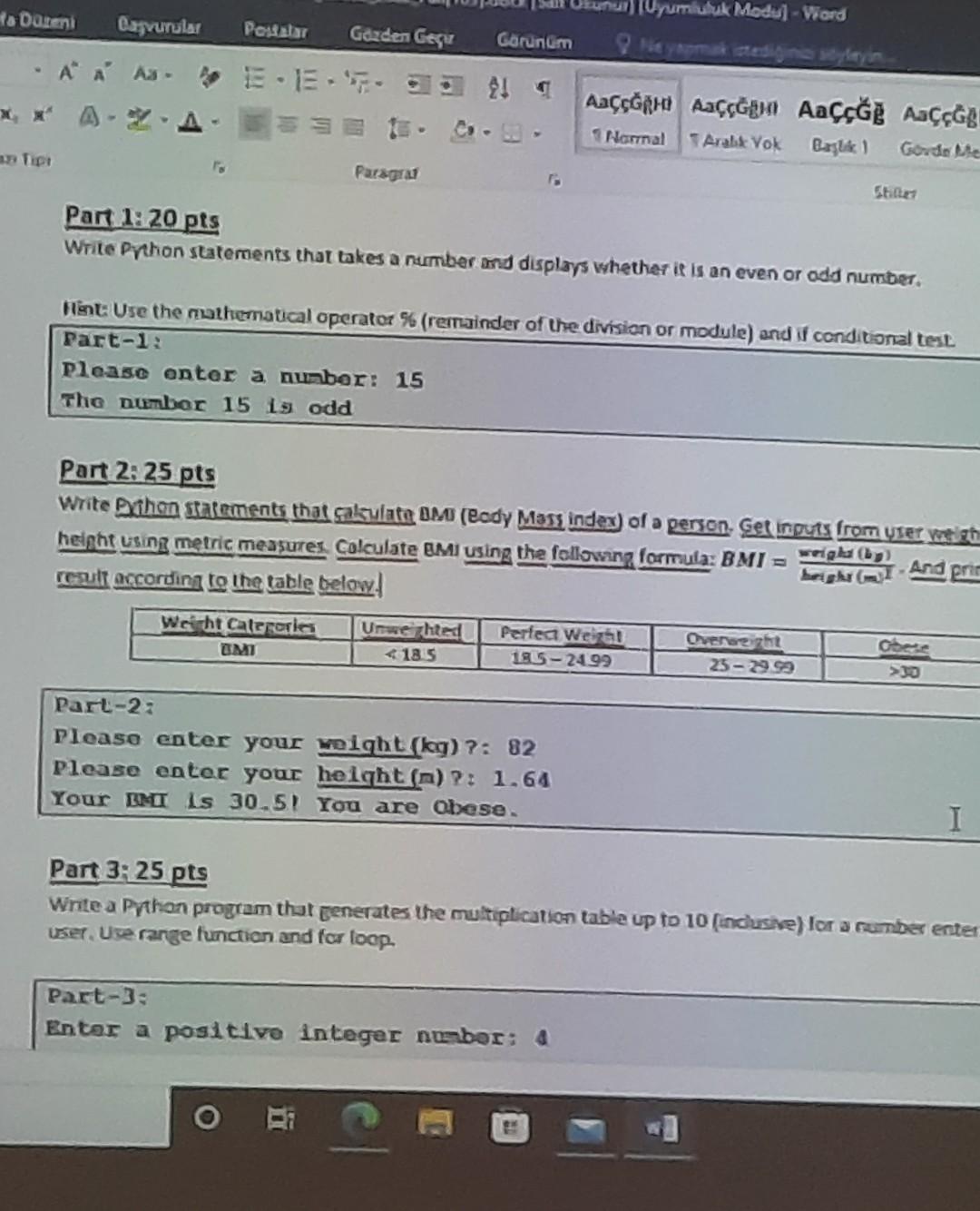 Python Programming One(HW1) - Assignment (Deadline 3/30) 1) Write down ...
