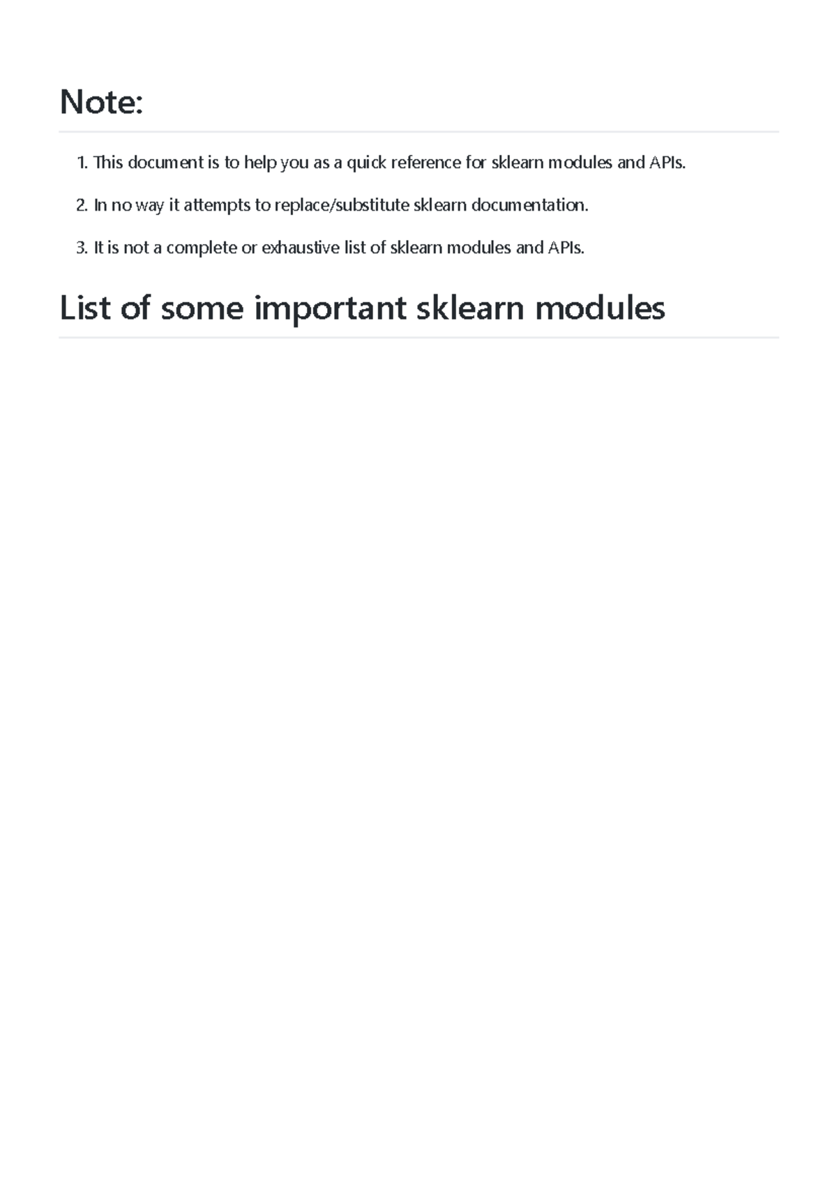 Sklearn Quick Reference Guide for ML Modules and APIs - Studocu