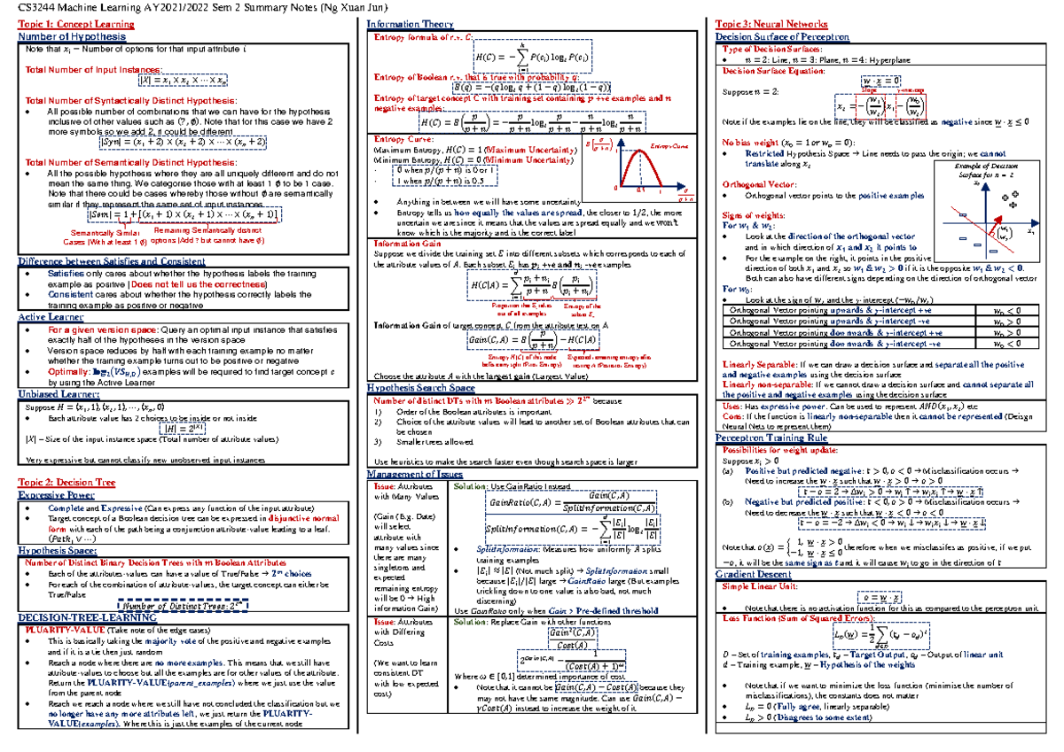 CS3244 Machine Learning Sem 2 Finals Cheatsheet Summary - Studocu