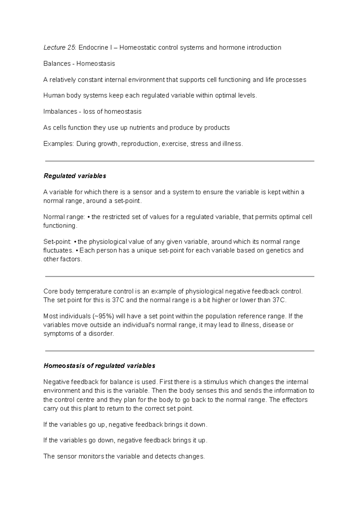 Lecture 25 Endocrine I – Homeostatic control systems and hormone ...