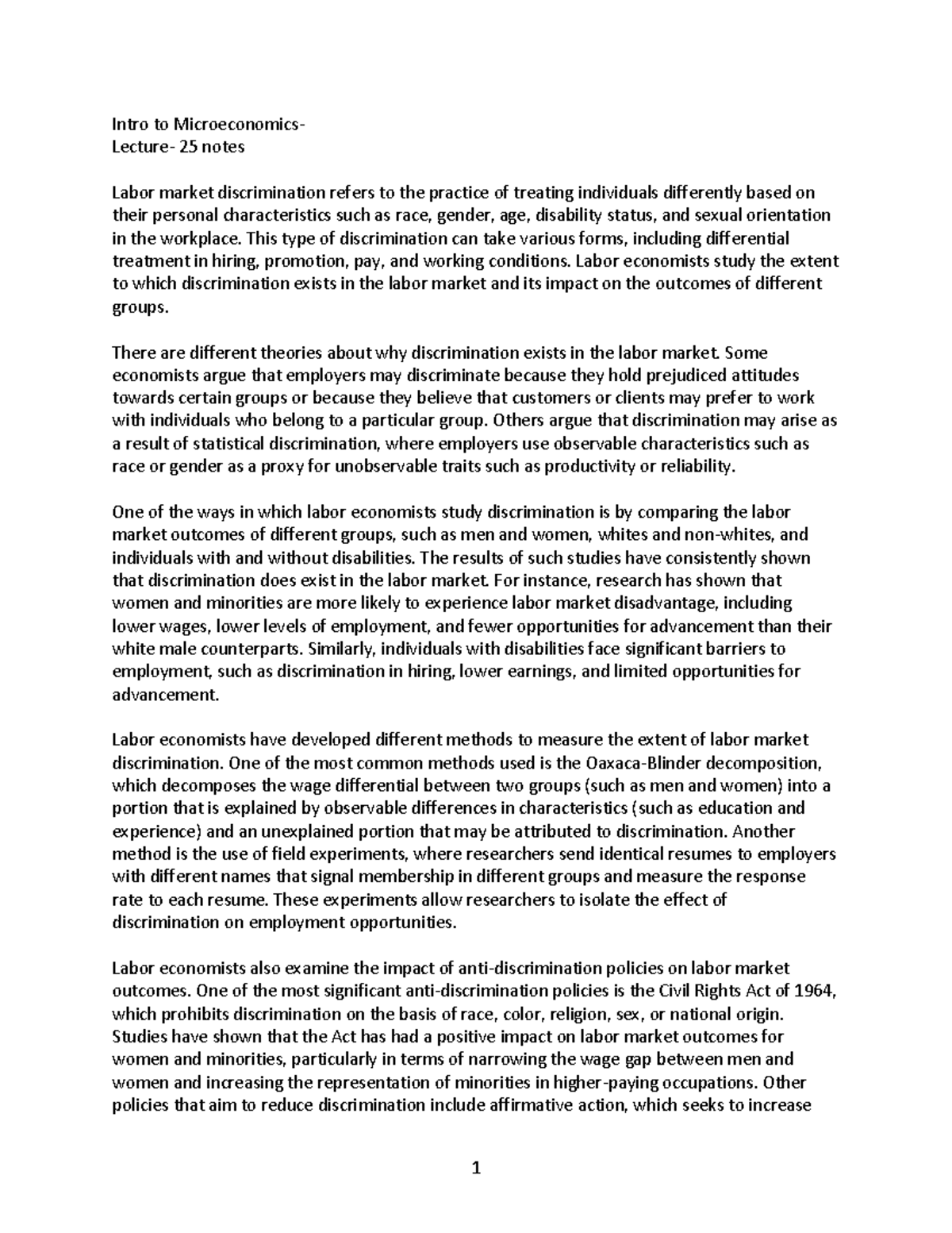 Intro to Microeconomics, lecture-25 notes - 1 Intro to Microeconomics ...