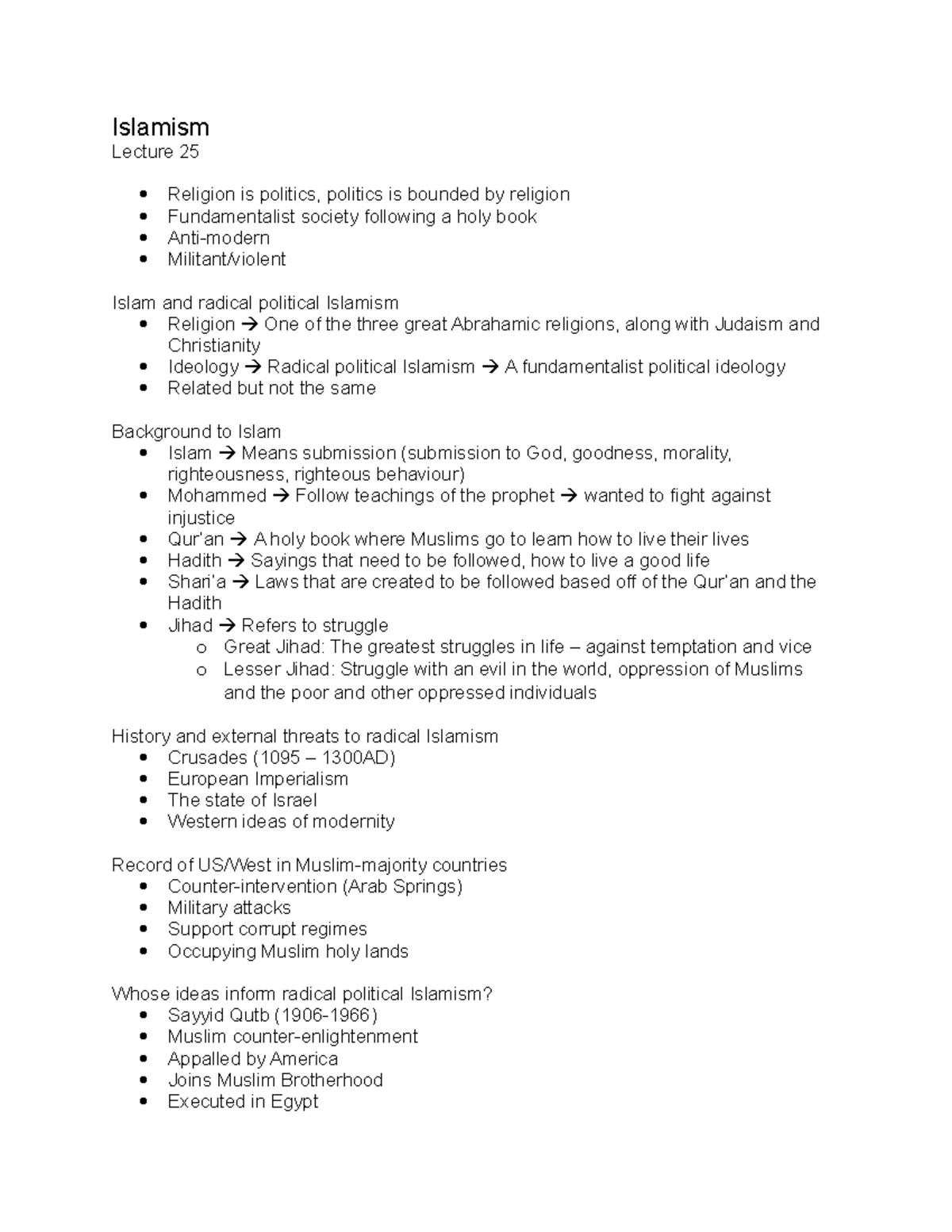 Lecture 25 (Islamism) - Islamism Lecture 25 Religion is politics ...