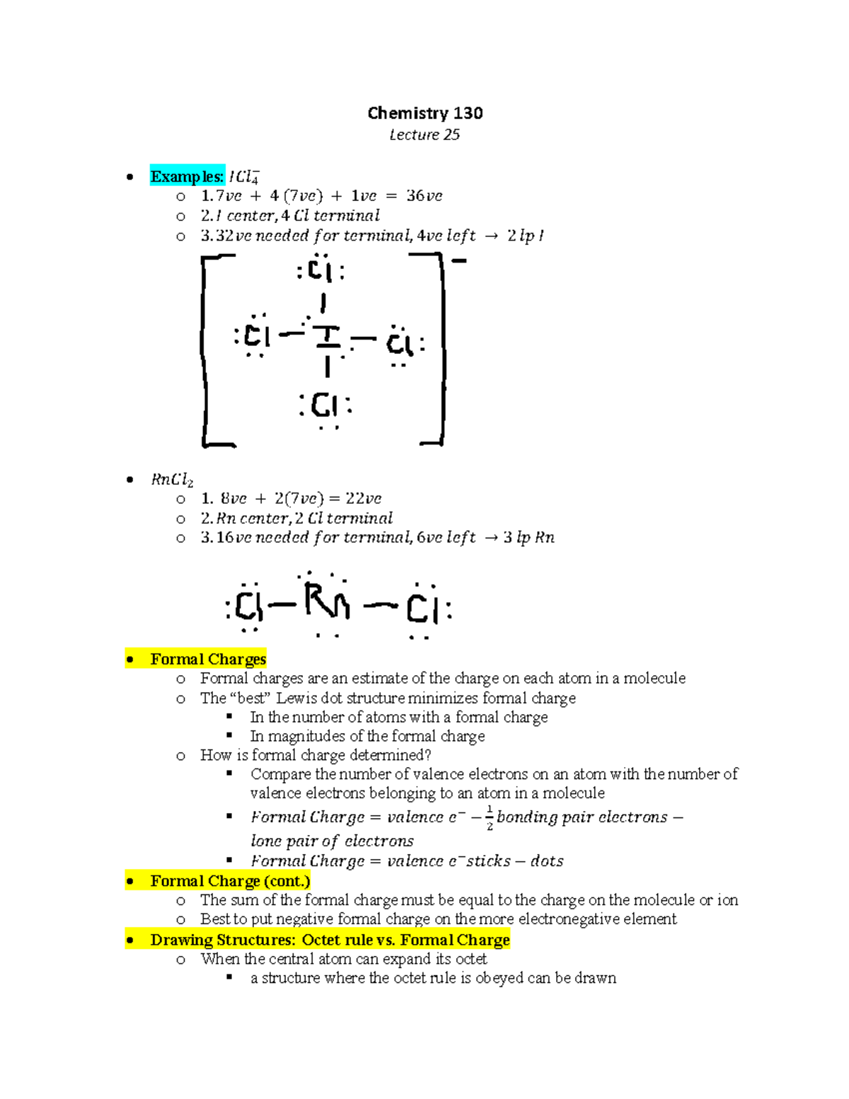 Chemistry 130 Notes [7.4] Lecture 25 - Chemistry 130 Lecture 25 ...
