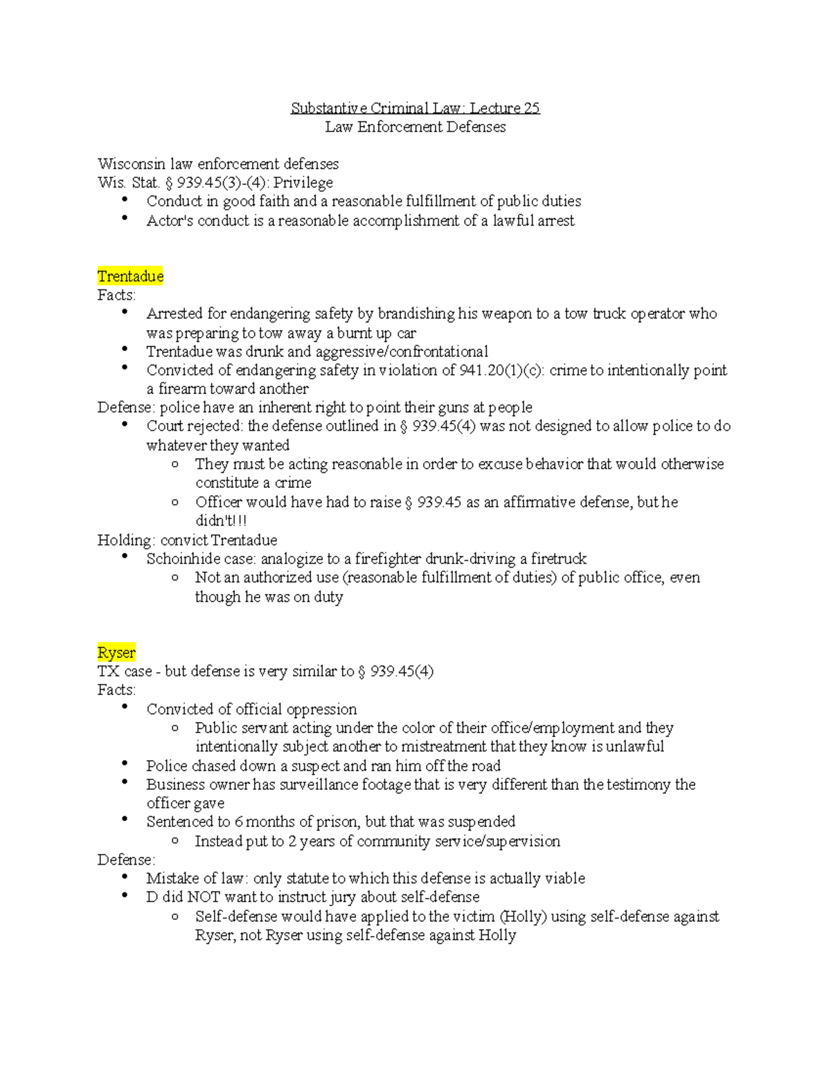 Substantive Criminal Law- Lecture 25 - Stat. § 939(3)-(4): Privilege ...