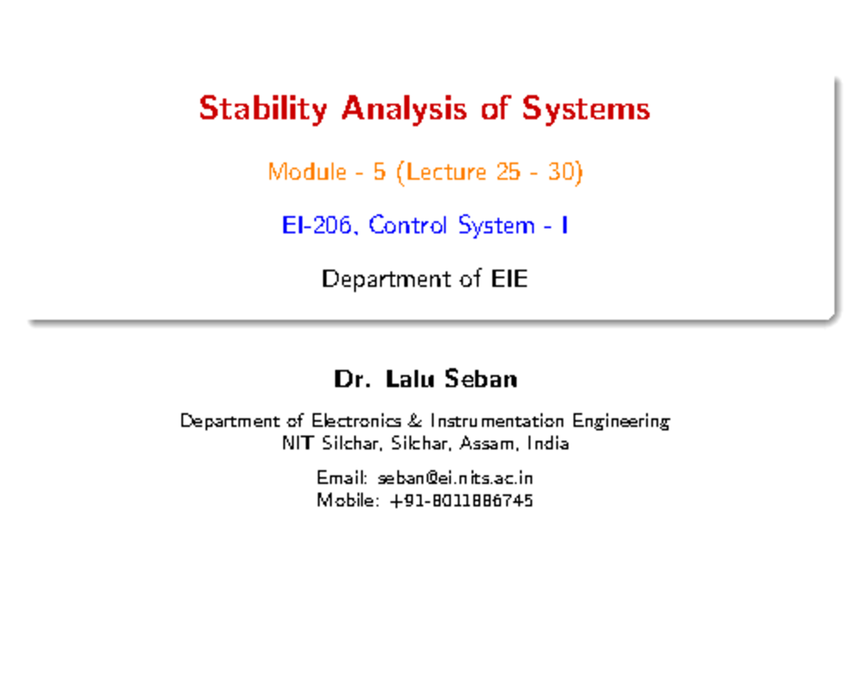 Stability Analysis of Control Systems (EIE 2025 Lecture 25-30) - Studocu