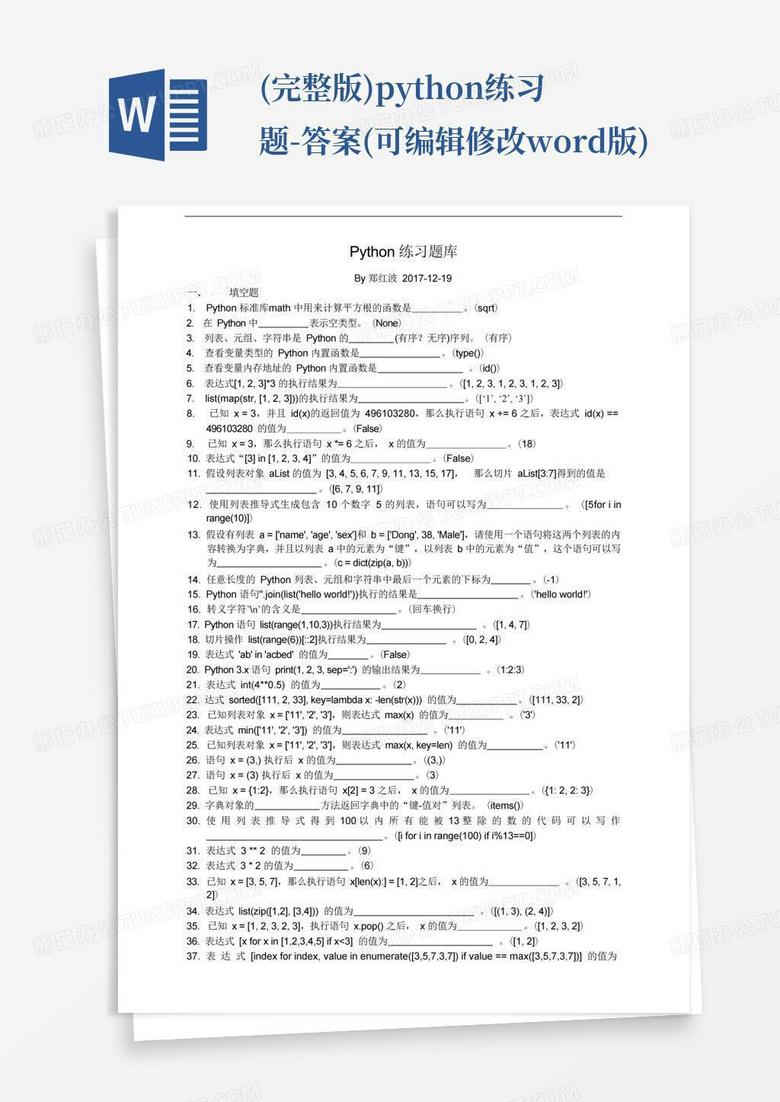 (完整版)python练习题-答案(可编辑修改版)Word模板下载_编号ldvzgeon_熊猫办公
