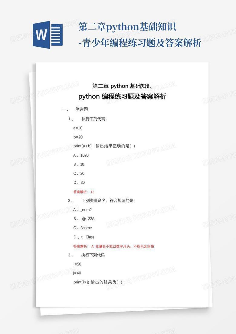 第二章python基础知识-青少年编程练习题及答案解析Word模板下载_编号qjmerabw_熊猫办公