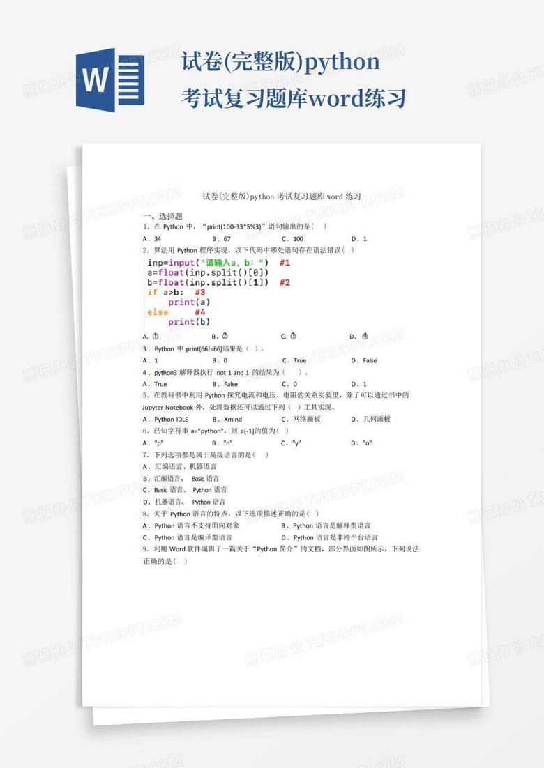 试卷(完整版)python考试复习题库练习Word模板下载_编号qkjdnkbb_熊猫办公