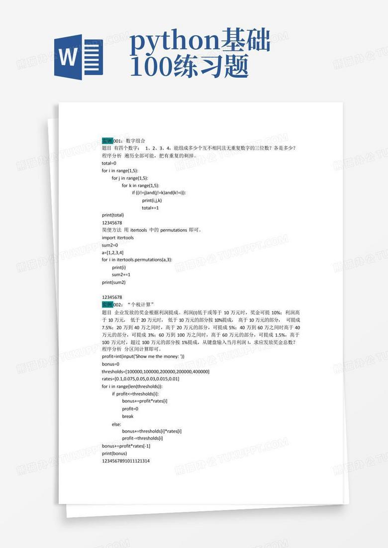python基础100练习题Word模板下载_编号lknzbyaj_熊猫办公