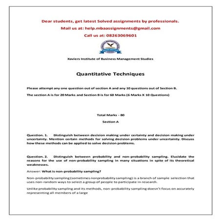 Quantitative techniques- Assignment - Management Lab - Practical ...