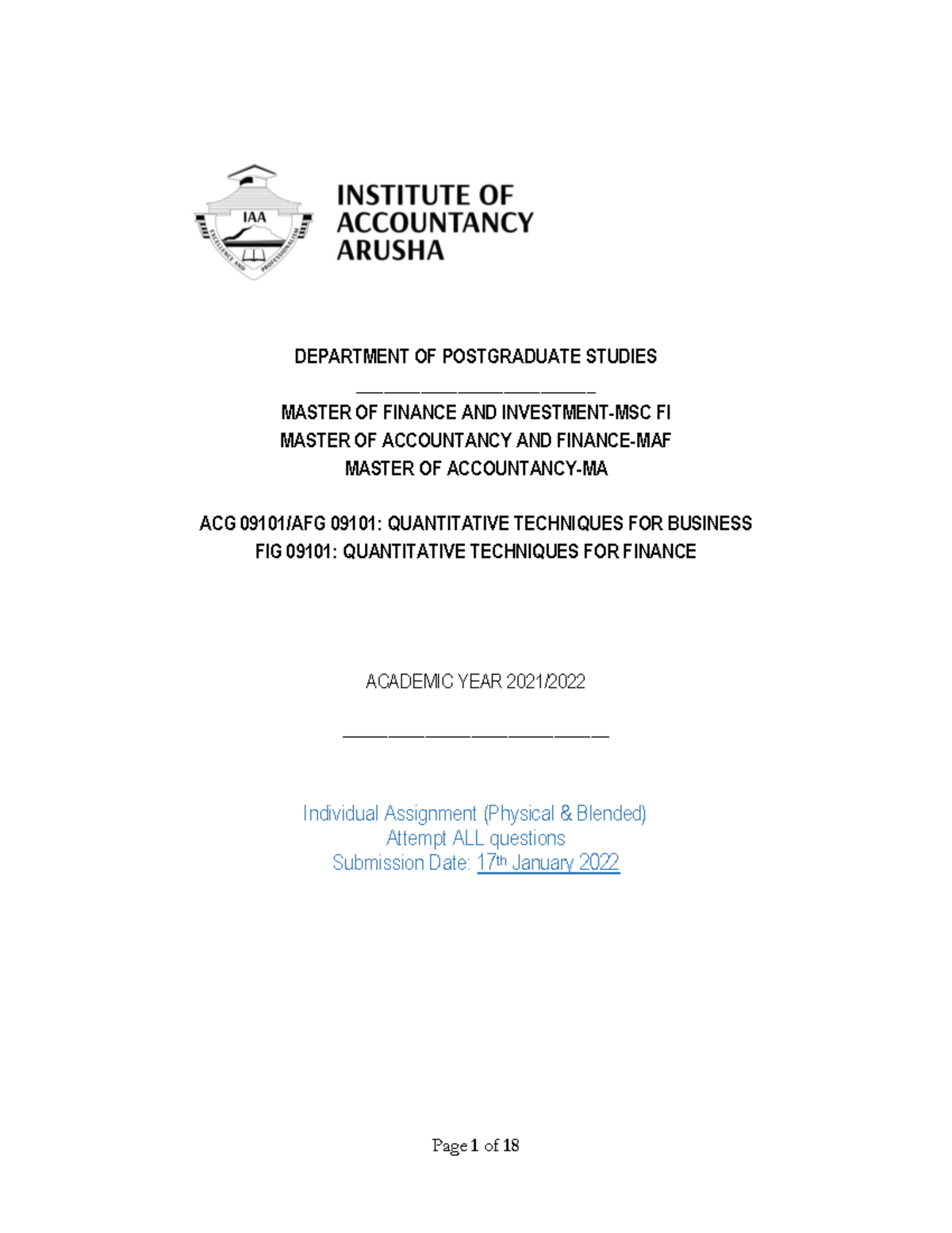 GUIDLINES FOR QUANTITATIVE ASSIGNMENT 1 .docx - QUANTITATIVE TECHNIQUES ...